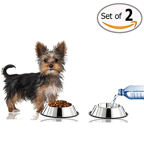 Feature: GPET Dog Bowl with Rubber Base, Stainless Steel 16 Ounce (Set of 2)